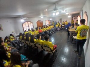 Acompañados por sus docentes, los jóvenes participaron en un momento de diálogo y fraternidad, donde pudieron relatar sus vivencias y emociones tras haber participado de la Santa Misa en la Basílica y de las diversas actividades del proyecto anual de peregrinación del colegio.